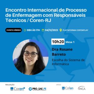 Rosane Barreto Cardoso participará do Primeiro Encontro Internacional de Processo de Enfermagem com Responsáveis Técnicos do Coren-RJ
