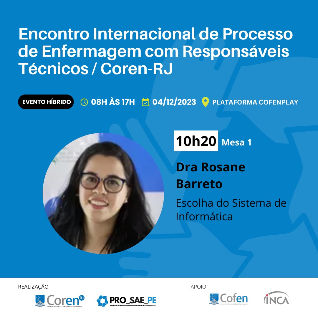 Olá, queridas profissionais de enfermagem! É com muita alegria que convidamos vocês para participar do Primeiro Encontro Internacional de Processo de Enfermagem destinado aos Responsáveis Técnicos. Este evento especial ocorrerá no dia 4 de dezembro, oferecendo a opção de participação tanto presencial quanto virtual, para que todos possam se envolver conforme suas necessidades.