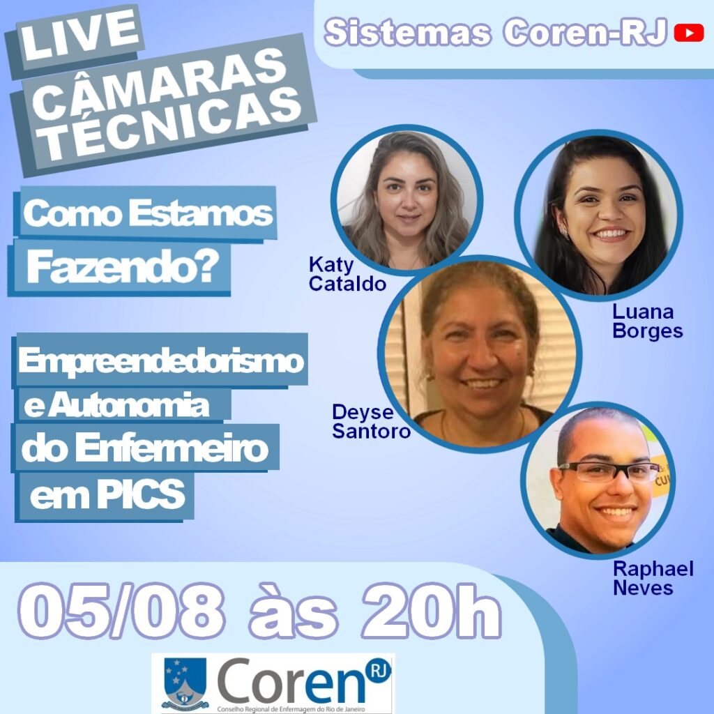 Na live da Dra. Deyse Santoro desta quinta, 05/08, às 120h, fiquem ligados nos relatos de experiência de colegas que trabalham com as PICS – Práticas Integrativas e Complementares da Saúde, no contexto do cuidado de enfermagem. Trata-se de um assertivo caminho para a autonomia dos profissionais, cujas práticas foram institucionalizadas por meio da Política Nacional de Práticas Integrativas e Complementares no SUS (PNPIC). Estas práticas podem estar presentes em todos os pontos da Rede de Atenção à Saúde, prioritariamente na Atenção Primária com grande potencial de atuação.