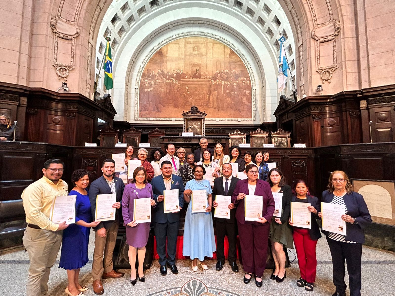 Nesta terça-feira (11), a deputada Lilian Behring promoveu uma Sessão Solene na Assembleia Legislativa do Estado do Rio de Janeiro (Alerj) em homenagem à Federação Pan-Americana de Profissionais de Enfermagem (Feppen), que realiza no Brasil o 17º Congresso Pan-Americano de Enfermagem, reunindo profissionais, lideranças e representantes de diversos países das Américas.
